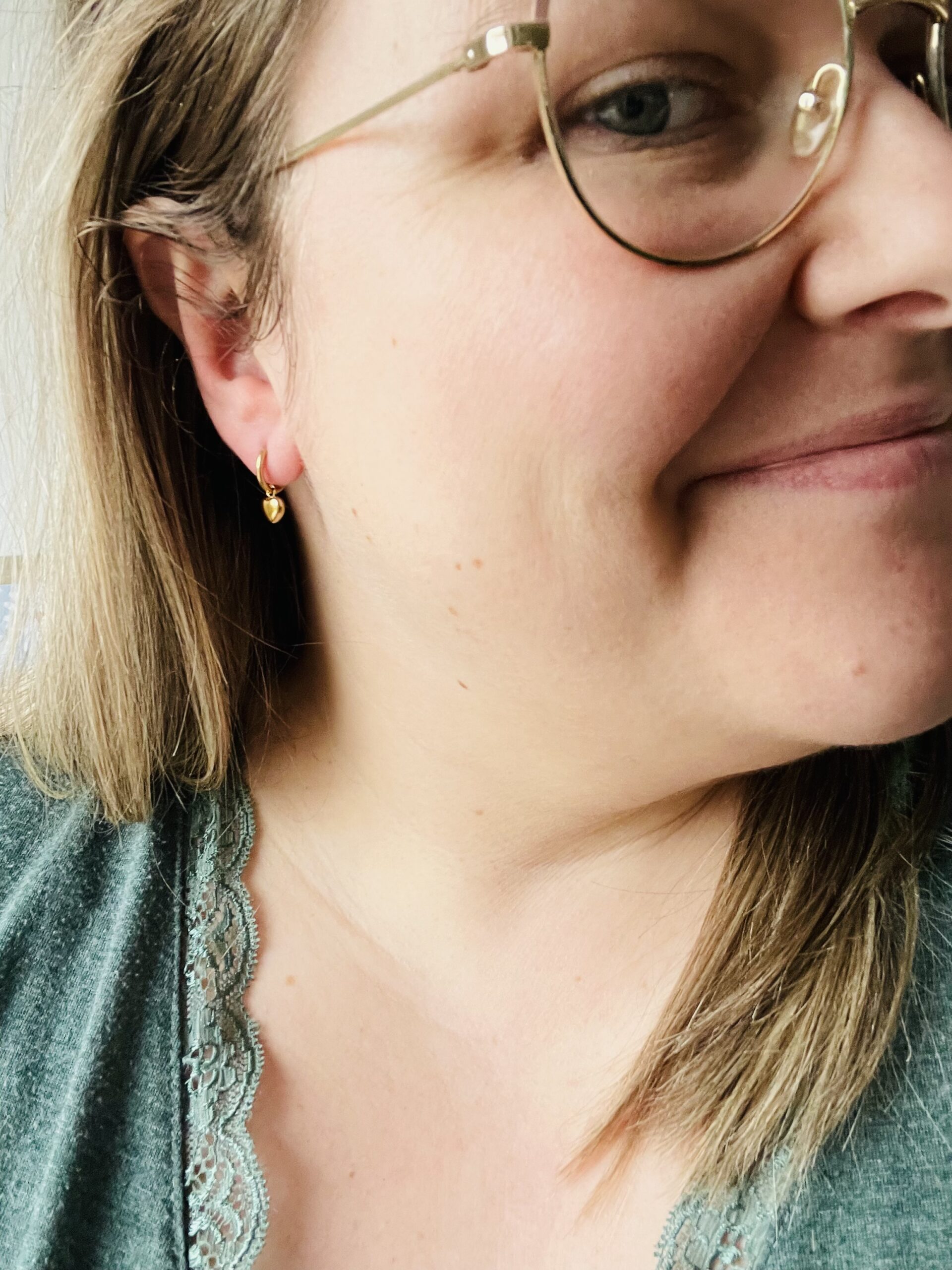 De oorringetjes zijn (incl. hartjes-bedeltje) 1,6cm x 0,6cm (l x b)
